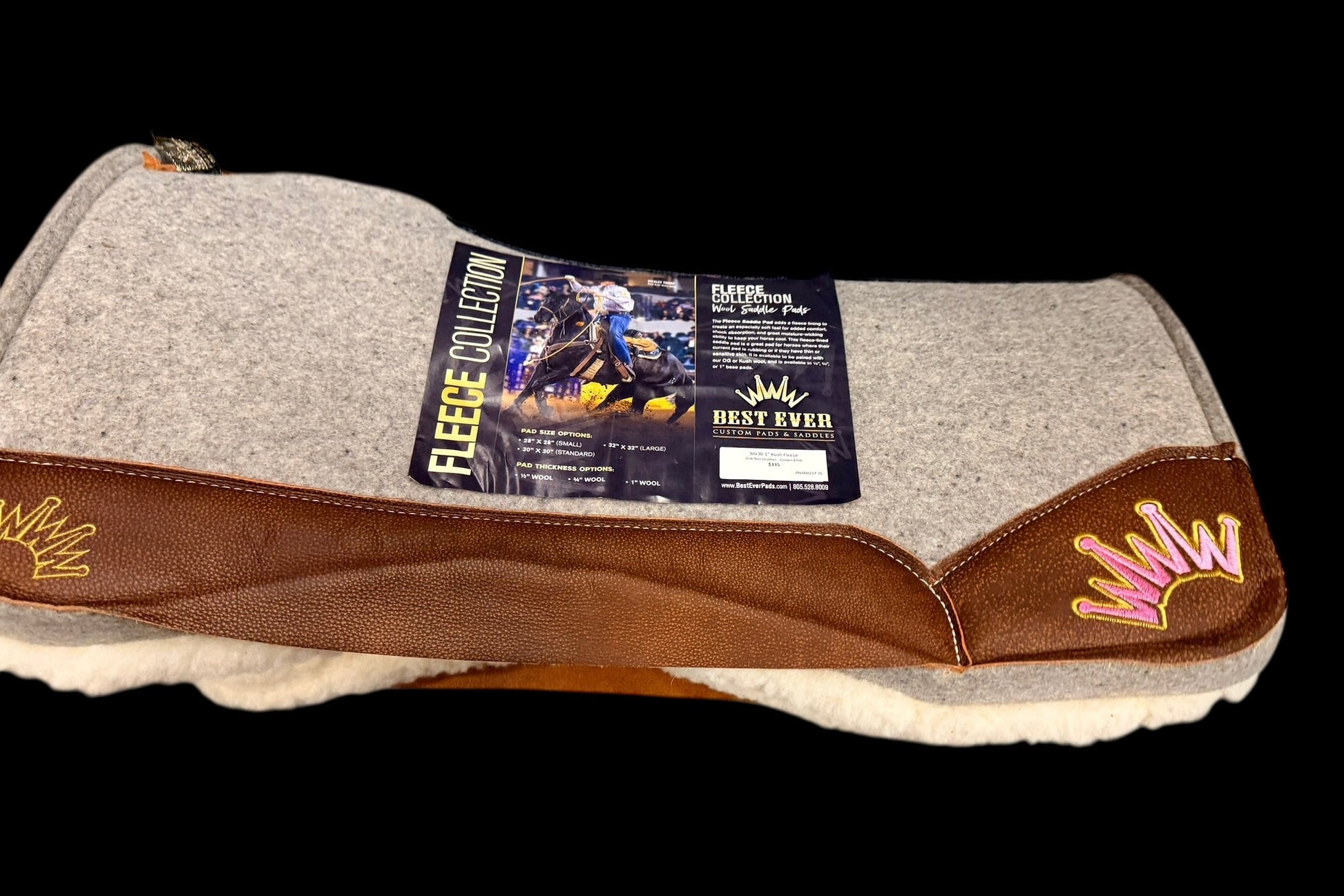 30"x30" 1" Kush Fleece Oak Nut Leather crown Emb Best Ever Pad