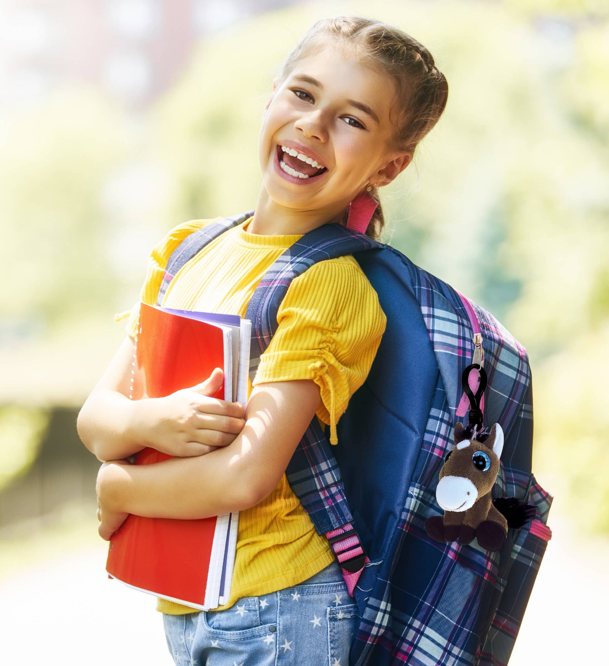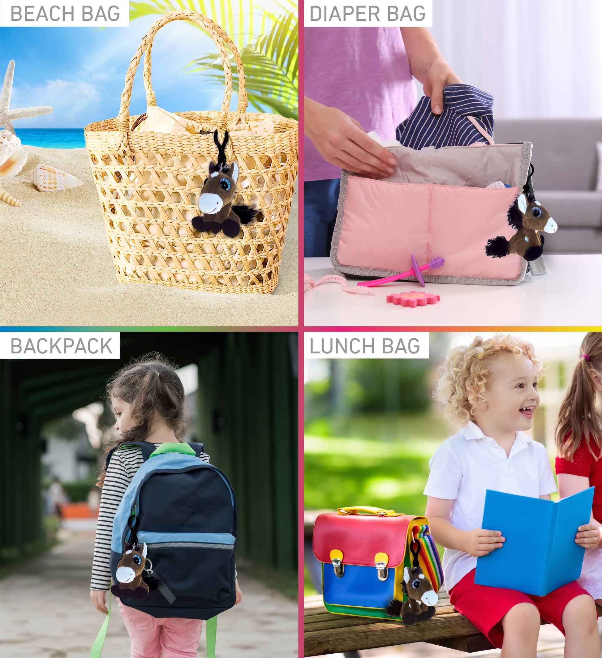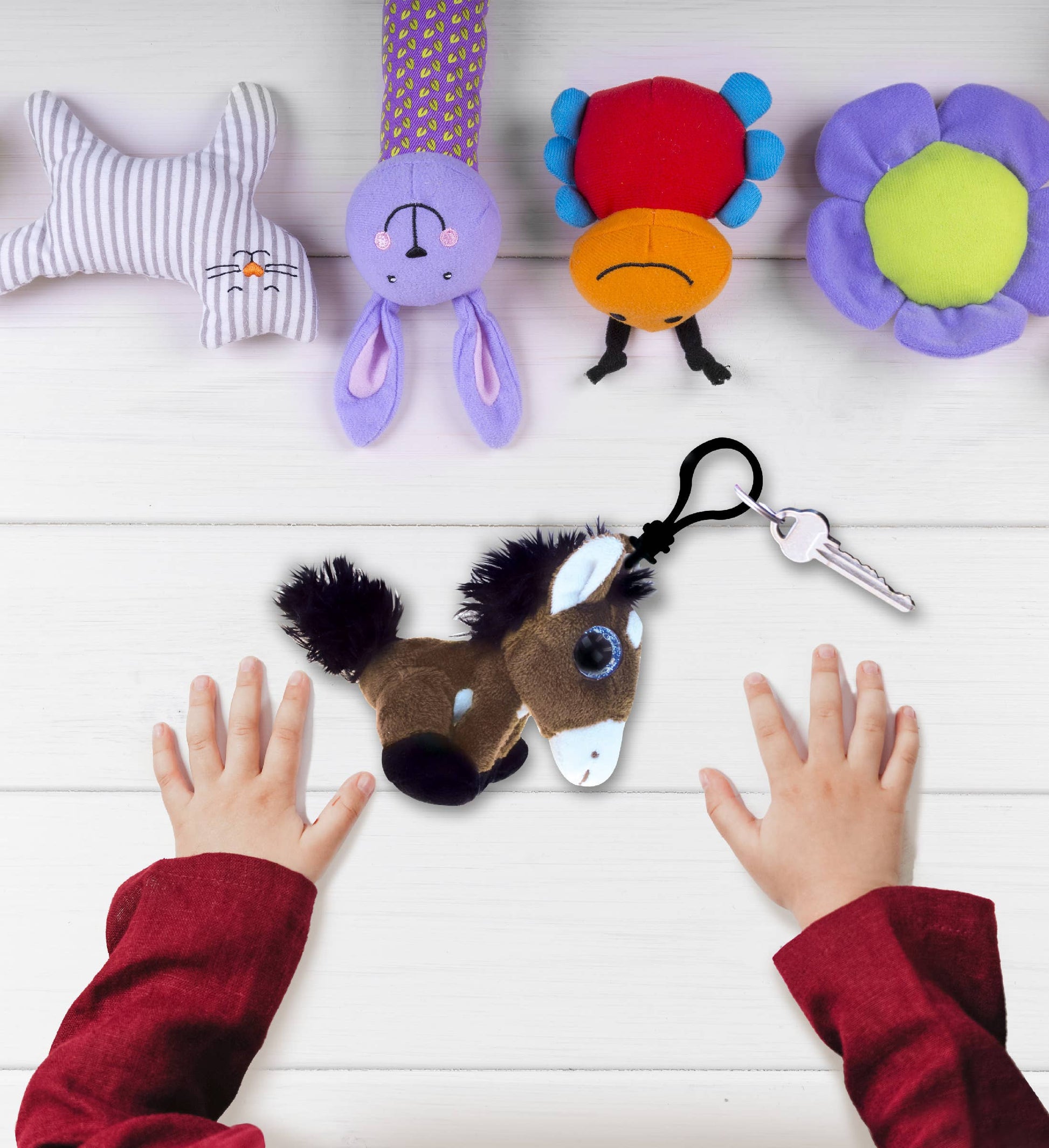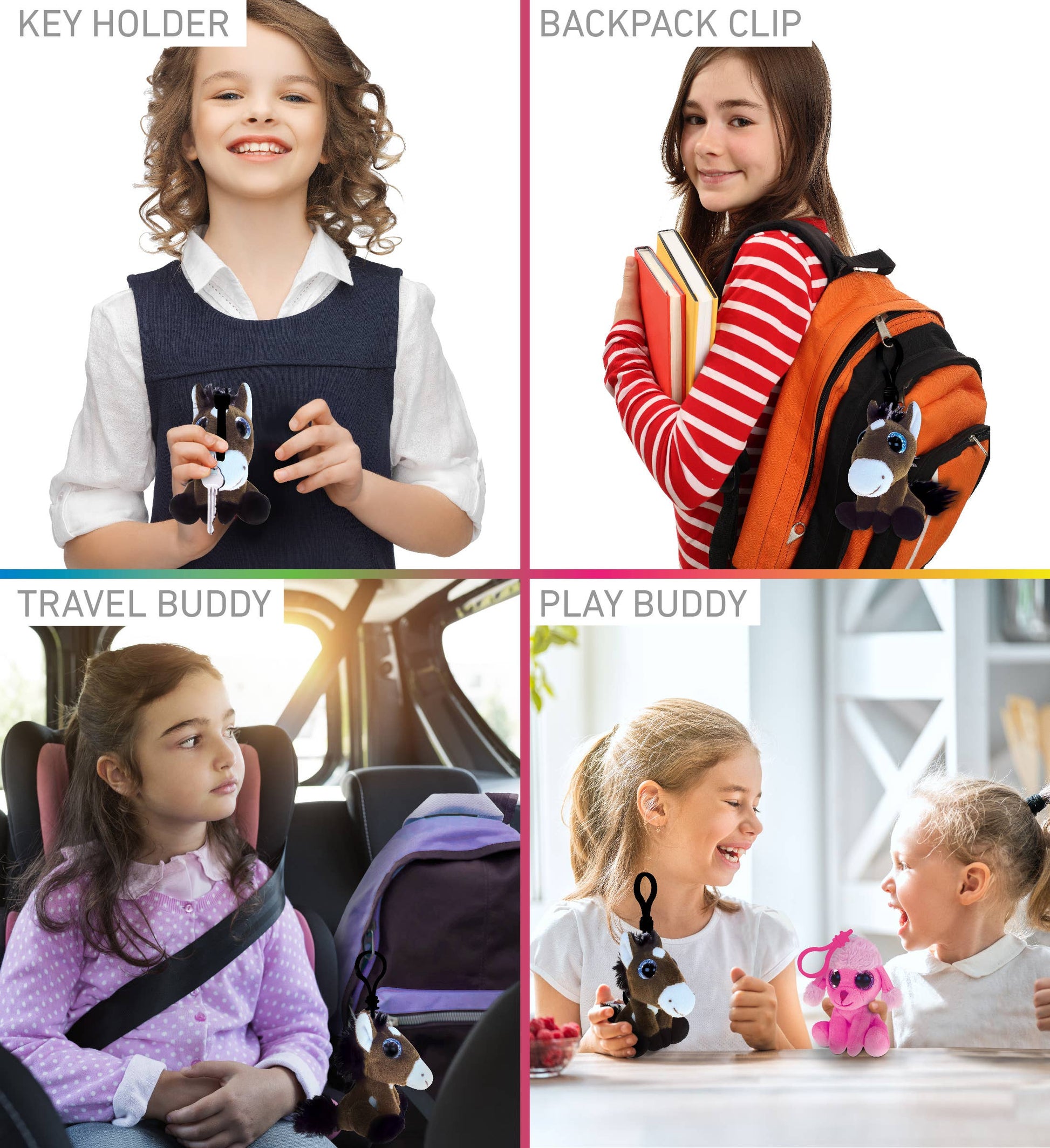 DolliBu Horse Plush Big Eyes Keychain Stuffed Animal - Soft Farm Animal Charm with Sparkling Big Eyes, Decorative Barn Plush Toy Accessory Fun Buddy Clip For Kids Keys, Purse, Backpack Bags