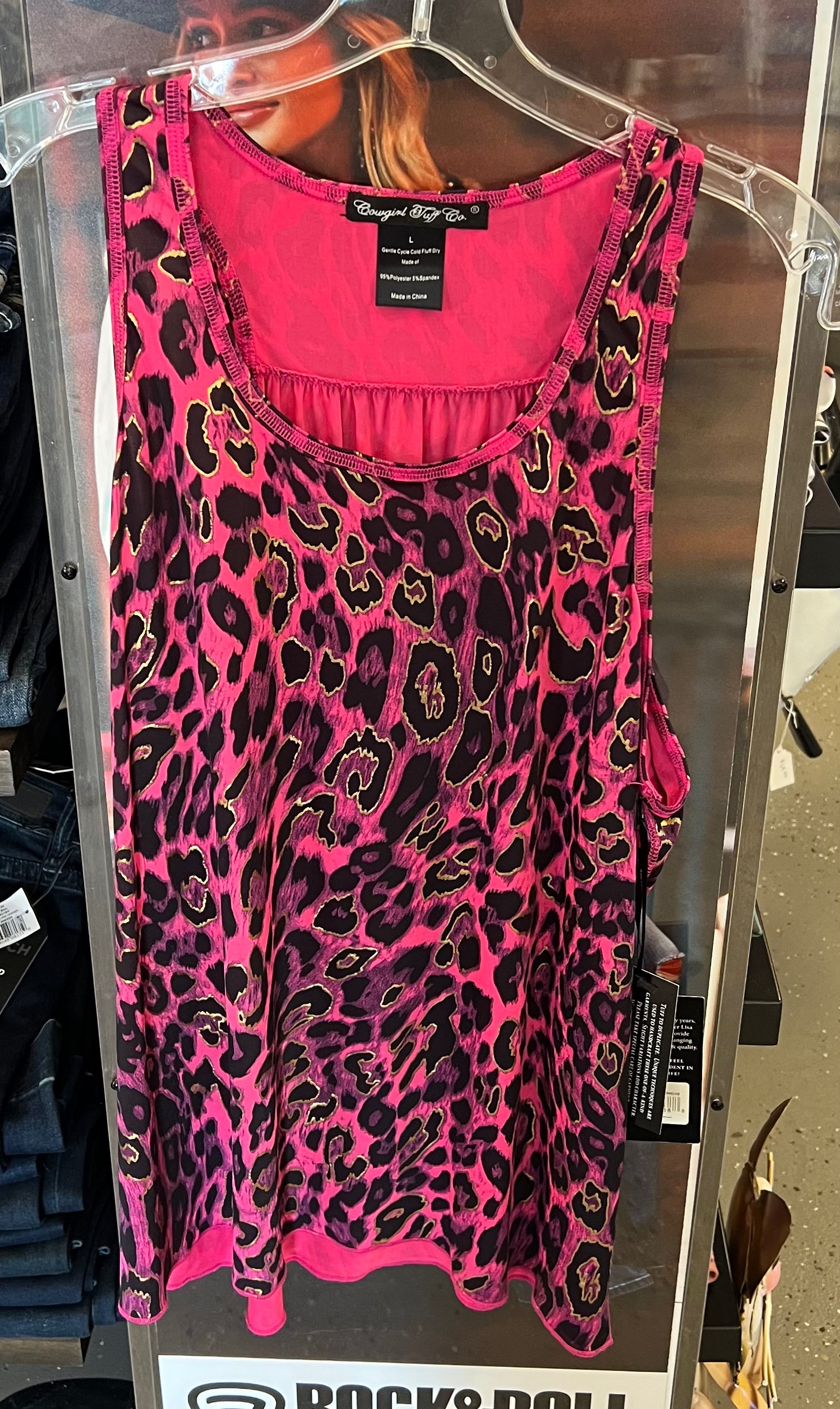 Cowgirl Tuff Flowy Tank- Hot pink Leopard
