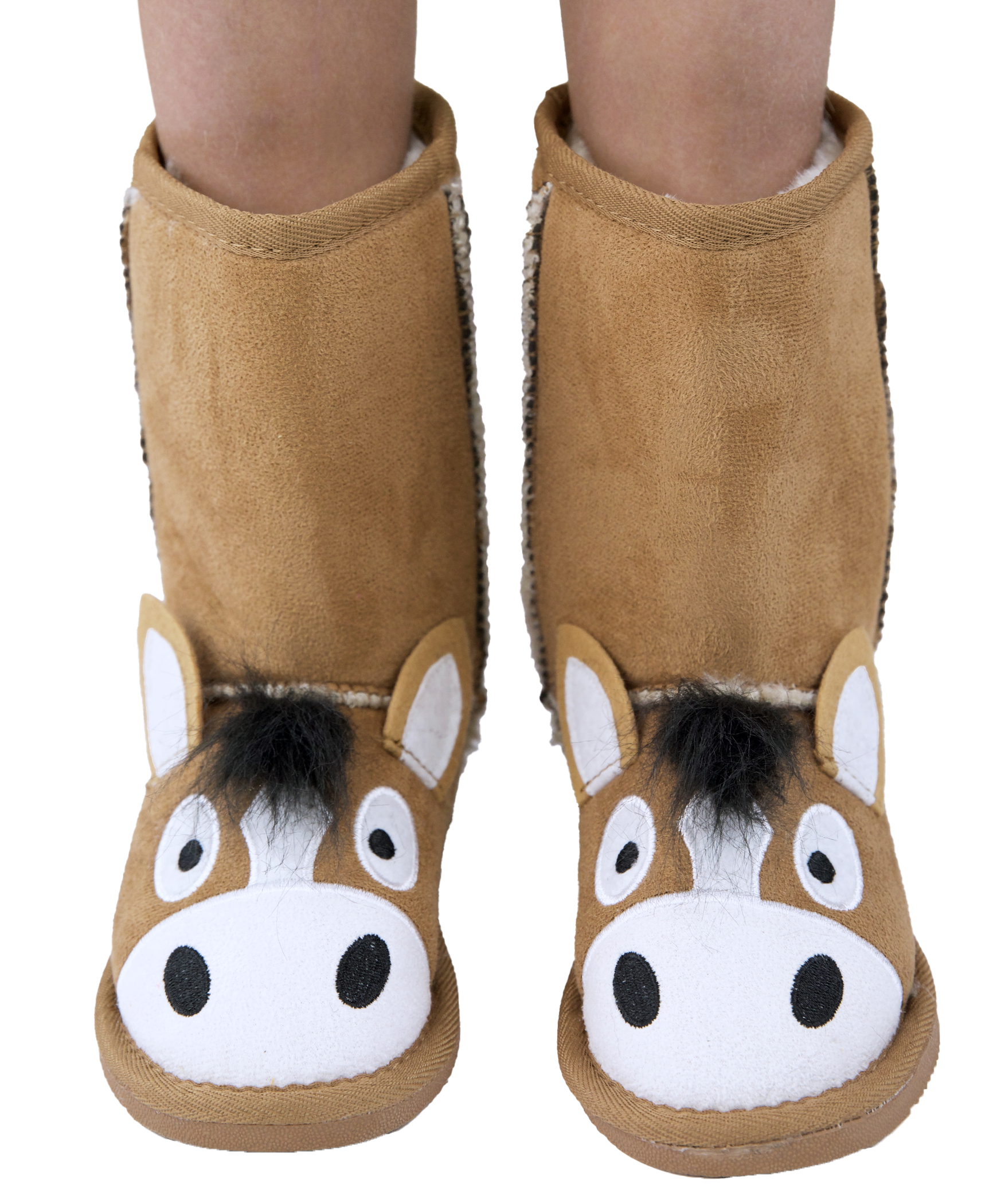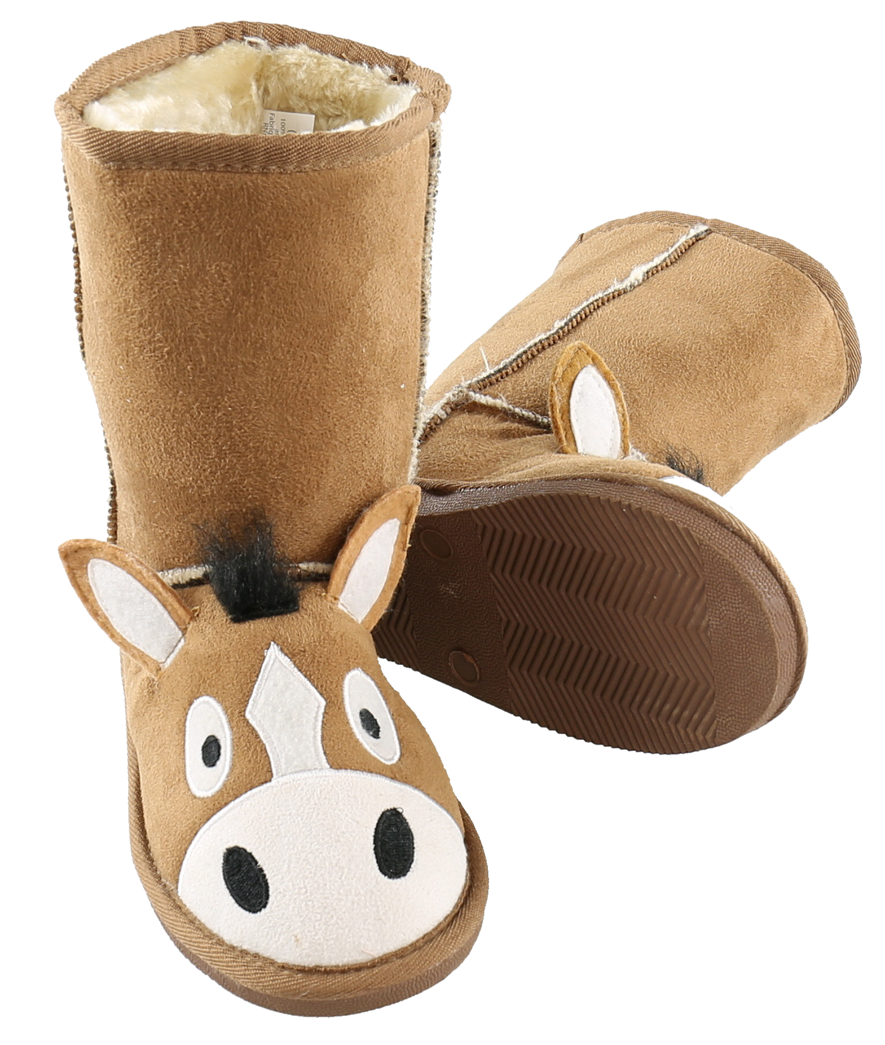 • Faux Suede exterior • Cozy Fleece Lining • Flexible rubber soles • Appliqued animal faces