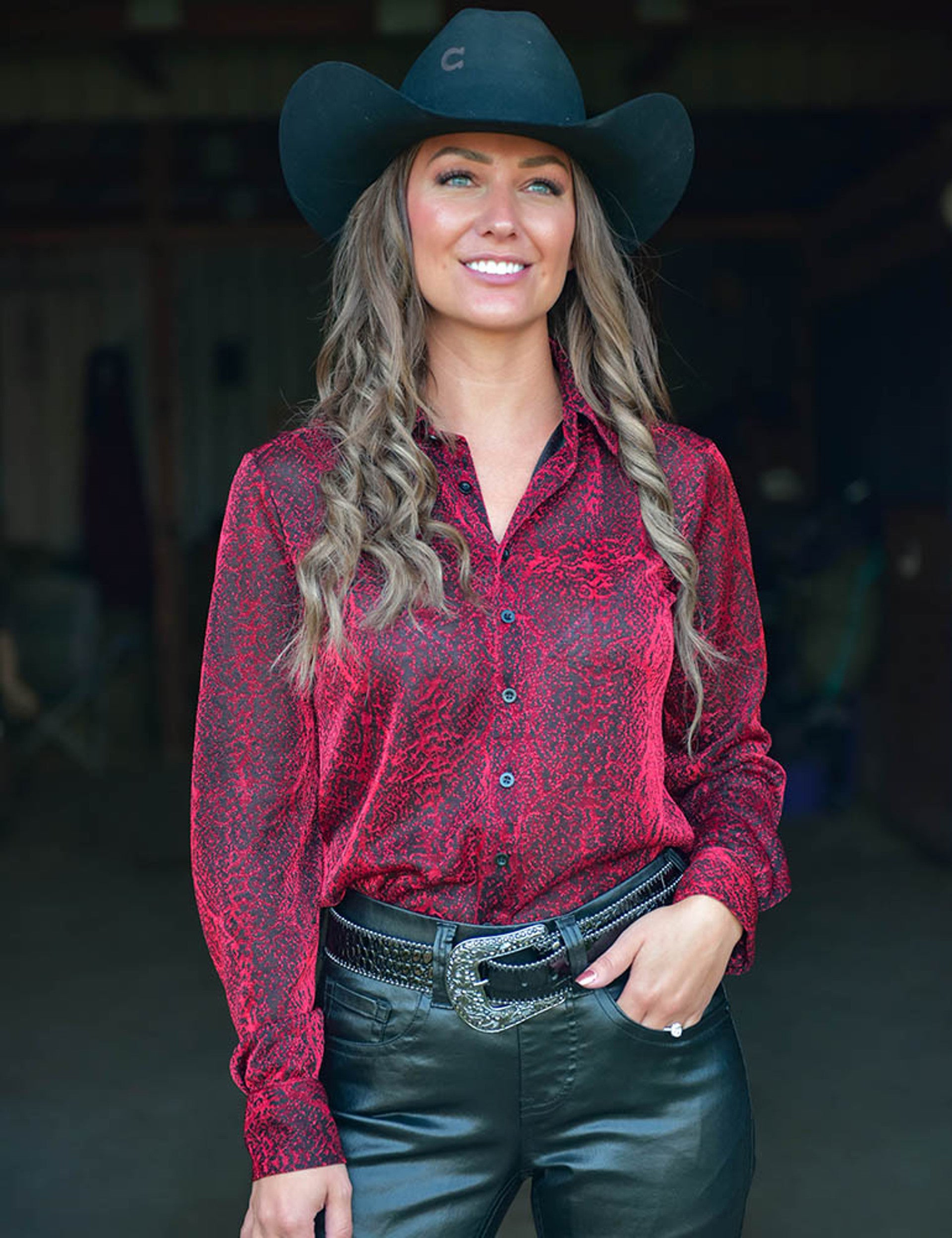 The “ORIGINAL” Pullover Button Up was invented by our Owner and Designer Lisa Bollin 5+ years ago after being so frustrated when getting her buttons hooked on the horn and popping her shirt open during a competition run. While designing this incredible shirt she made sure to add a longer back tail to stay tucked in, longer arm length for reaching, only using the highest quality stretch fabrics including our amazing Breathe cooling material for the hottest days of summer, ultra soft shimmer fabrics, soft stretch suede, butter-like feel of our jerseys, stretch satin, stretch lightweight denims and so many more. She has recently updated them all to have classic cuff details. The no-gapping front button placket has three functional buttons for easy on-and-off and six faux buttons that create the appearance of a classic button-down and so flattering you can wear them to the office or dress them up for that special occasion. Not only are these fun, but they're FUNCTIONAL, THE SAFEST SHIRT YOU'LL EVER WEAR COMPETING. Other brands claim they have the best, but here at Cowgirl Tuff Co.® we really do believe this is the most comfortable button-down you'll ever wear.
