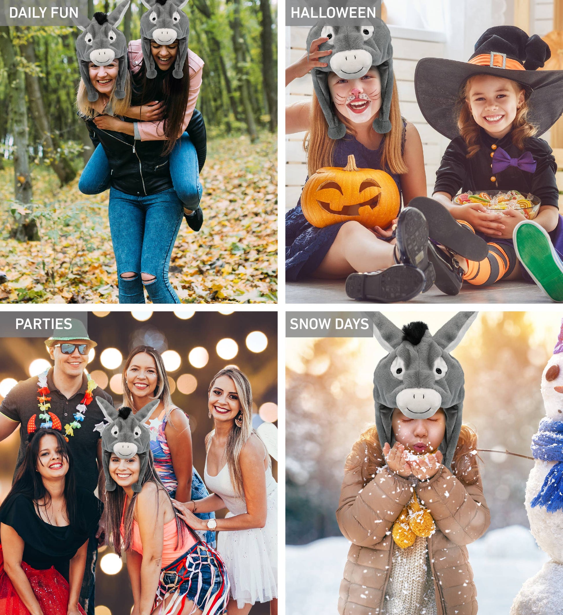 DolliBu Donkey Plush Hat - Donkey Stuffed Animal Winter Hat, Novelty Donkey Hat with Cozy Fleece, Warm Fluffy Beanie, Funny Adults and Kids Hat with Ear Flaps for Halloween or Cosplay - One Size