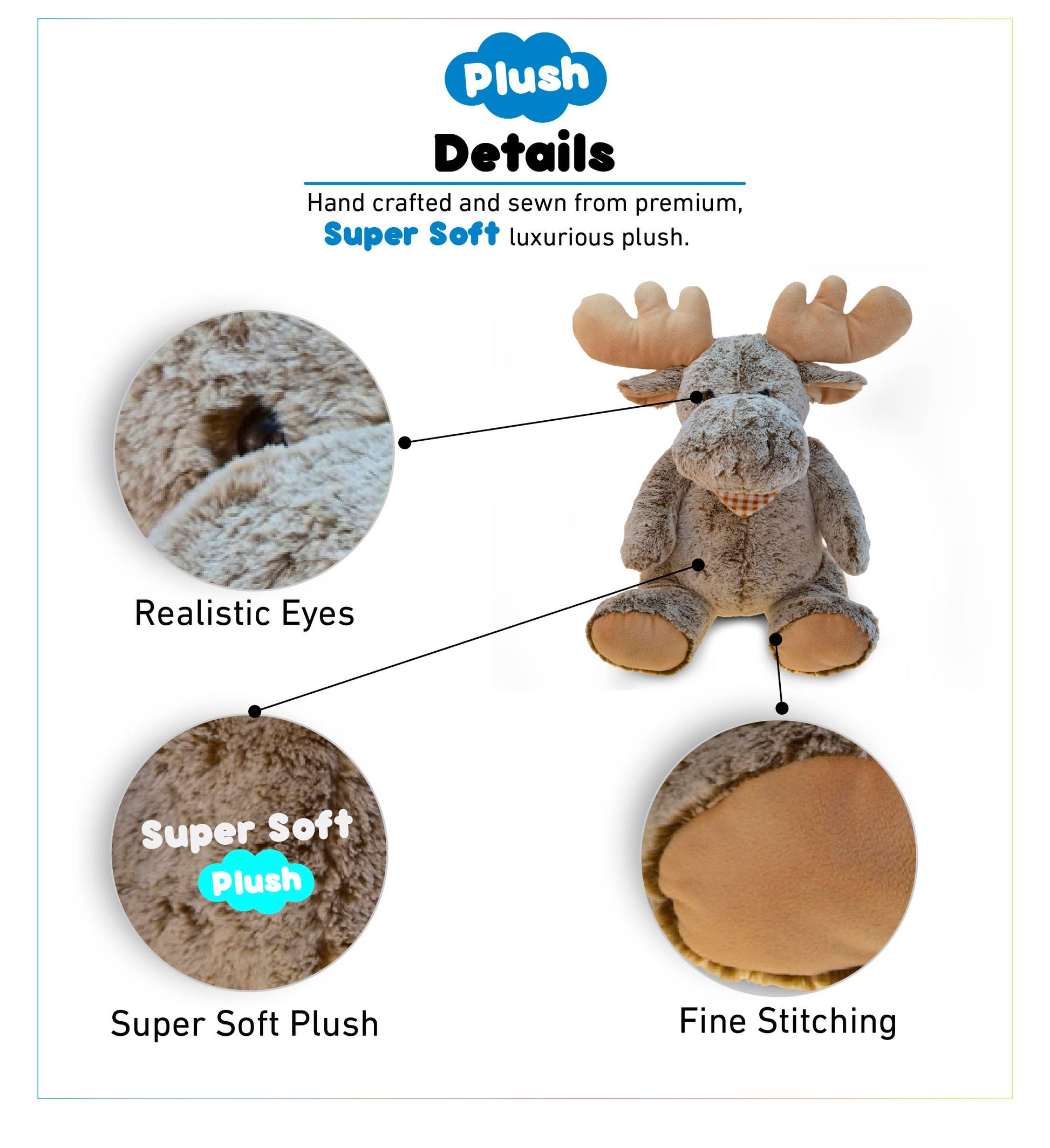 DolliBu Plush Moose Stuffed Animal Pillow Size - Super Soft Animal Pillow for Kids, Cozy Nap Buddy, Floor Pillow for Kids & Toddlers, Jumbo Hugging Plush, Travel Cuddle Pillow for Kids - 18 Inch
