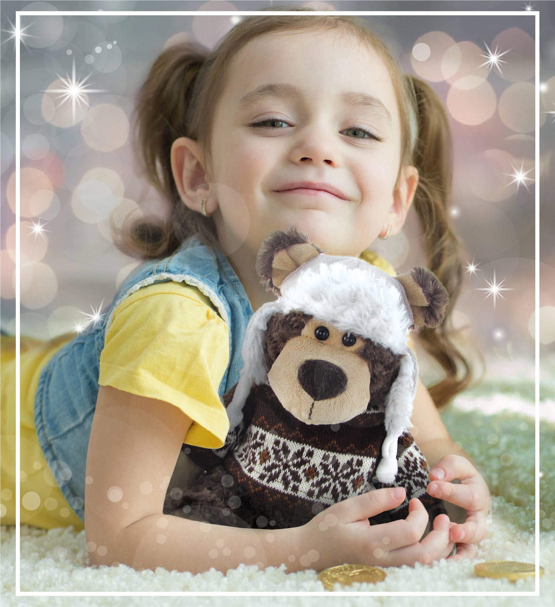 DolliBu Plush Grizzly Bear Stuffed Animal - Soft Fur Huggable Brown Grizzly Bear Wearing Hat Sweater, Adorable Plush Toy Wild Life Cuddle Gifts, Super Soft Animal Toy for Kids and Adults - 9 Inch